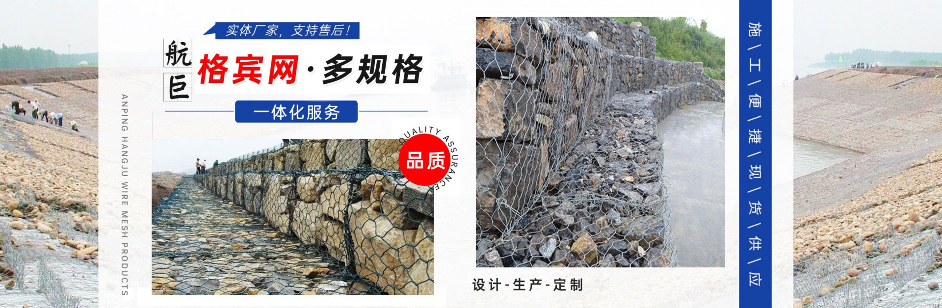 安平縣航巨絲網(wǎng)制品有限公司位于富有“絲網(wǎng)之鄉(xiāng)”美譽(yù)的—河北安平縣,此地是世界上最大的絲網(wǎng)集散基地,是華北平原上一顆璀璨的明珠。地處京、津、石三大城市中間,交通便利,是一家集生產(chǎn),加工,銷售為一體的大型絲網(wǎng)廠家。本廠專業(yè)生產(chǎn)各種類型的絲網(wǎng),類型齊全,主要包括:格賓石籠網(wǎng),雷諾護(hù)墊,麥克排水墊,加筋麥克墊,市政護(hù)欄,防爆籠,主動(dòng)防護(hù)網(wǎng),被動(dòng)防護(hù)網(wǎng),電焊網(wǎng)片,鋼格柵板等產(chǎn)品,形成了針對(duì)邊坡支護(hù)、基坑支護(hù)、山體邊坡綠化、鐵路、高速、公路、江河、堤壩及海塘的防沖刷保護(hù)以及水庫(kù)、河流截流等不同行業(yè)、不同規(guī)模、不同應(yīng)用的絲網(wǎng)產(chǎn)品和針對(duì)性解決方案,是國(guó)內(nèi)最有影響力的絲網(wǎng)產(chǎn)品供應(yīng)商。技術(shù)指標(biāo)達(dá)到國(guó)家同類產(chǎn)品標(biāo)準(zhǔn),可以接受較大的定單并保證質(zhì)量和生產(chǎn)期限?! 」臼冀K堅(jiān)持誠(chéng)信為本、質(zhì)量第一、客戶至上的經(jīng)營(yíng)理念,本著互惠互利的精神,希望與國(guó)內(nèi)外朋友共同合作,為您提供優(yōu)質(zhì)的產(chǎn)品和服務(wù)。我公司在創(chuàng)新管理中求發(fā)展、創(chuàng)新經(jīng)營(yíng)中求生存。把企業(yè)標(biāo)準(zhǔn)化管理、定額管理、計(jì)劃管理,公司十分注重把握市場(chǎng)經(jīng)濟(jì)的信息脈絡(luò),用現(xiàn)代網(wǎng)絡(luò)技術(shù),以科研開發(fā)為原動(dòng)力,與科技院校及相關(guān)專家密切合作,共同研制開發(fā)21世紀(jì)適用顧客需求的相關(guān)產(chǎn)品?! “财娇h航巨絲網(wǎng)制品一直是以“質(zhì)量精良,交貨及時(shí),價(jià)格合理,服務(wù)周到”的宗旨來為廣大客戶服務(wù);并且本著“質(zhì)...